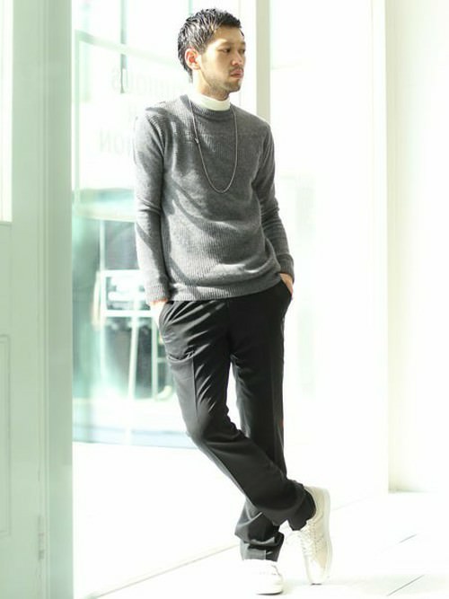 私的にお気に入りなのが、このルック。モックネックのカットソーとニットレイヤードがなんともオシャレ!