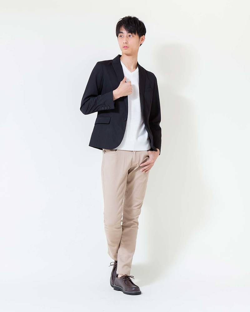 堅苦しすぎず、幅広い場面に対応できる有能コーデです。
