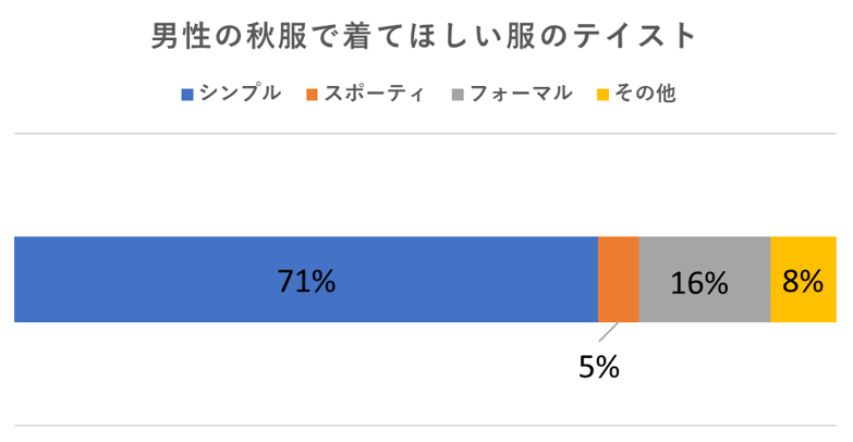 71%もの女性が、秋服コーディネートにも「シンプル」を男性へ求めていました。