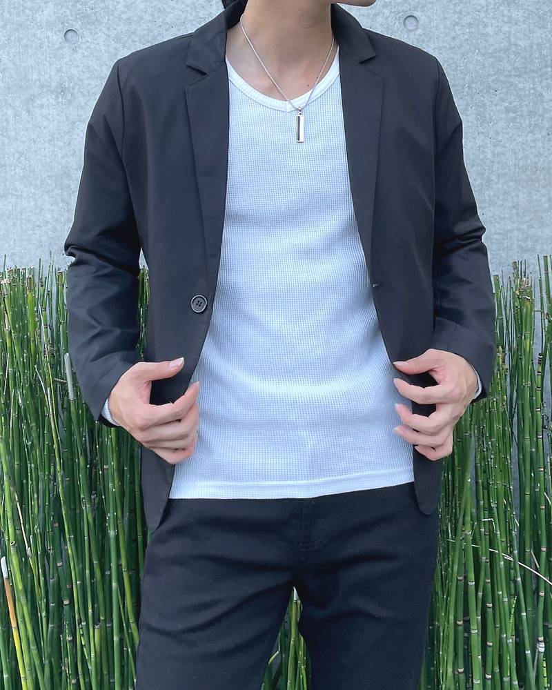 【4:長袖テーラードジャケット×半袖Tシャツ×パンツ】