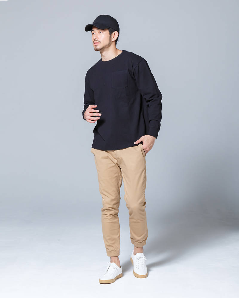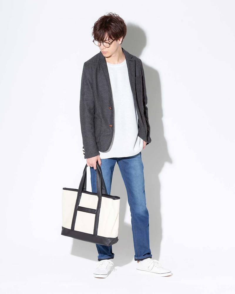 ラフになりすぎないように、パンツを暗めにすることで落ち着いた印象になるバランスをとってますね!