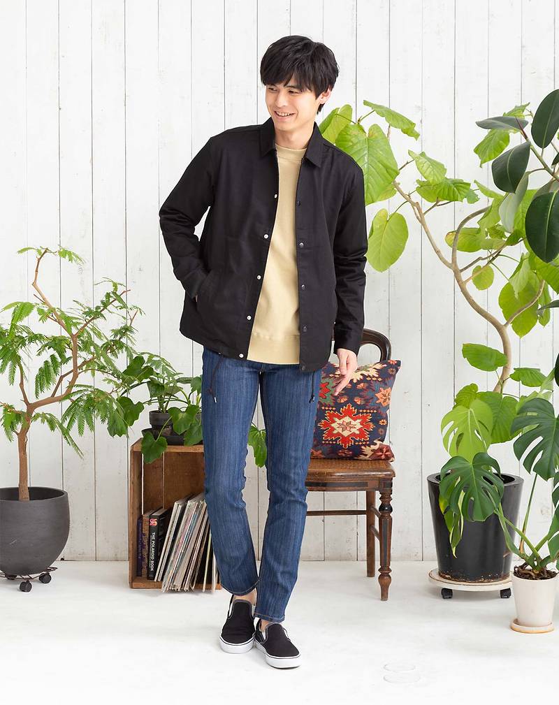 一枚で全体を締めてくれる黒のコーチジャケットは使いやすさバツグンですね!