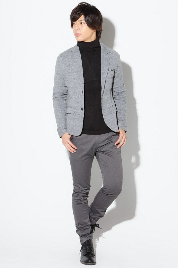 テーラードジャケット×タートルニット×Vネック長袖Tシャツ×ストレッチパンツ(4点セット)