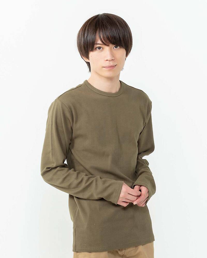 スパンテレコクルーネック長袖Tシャツ(カーキ)