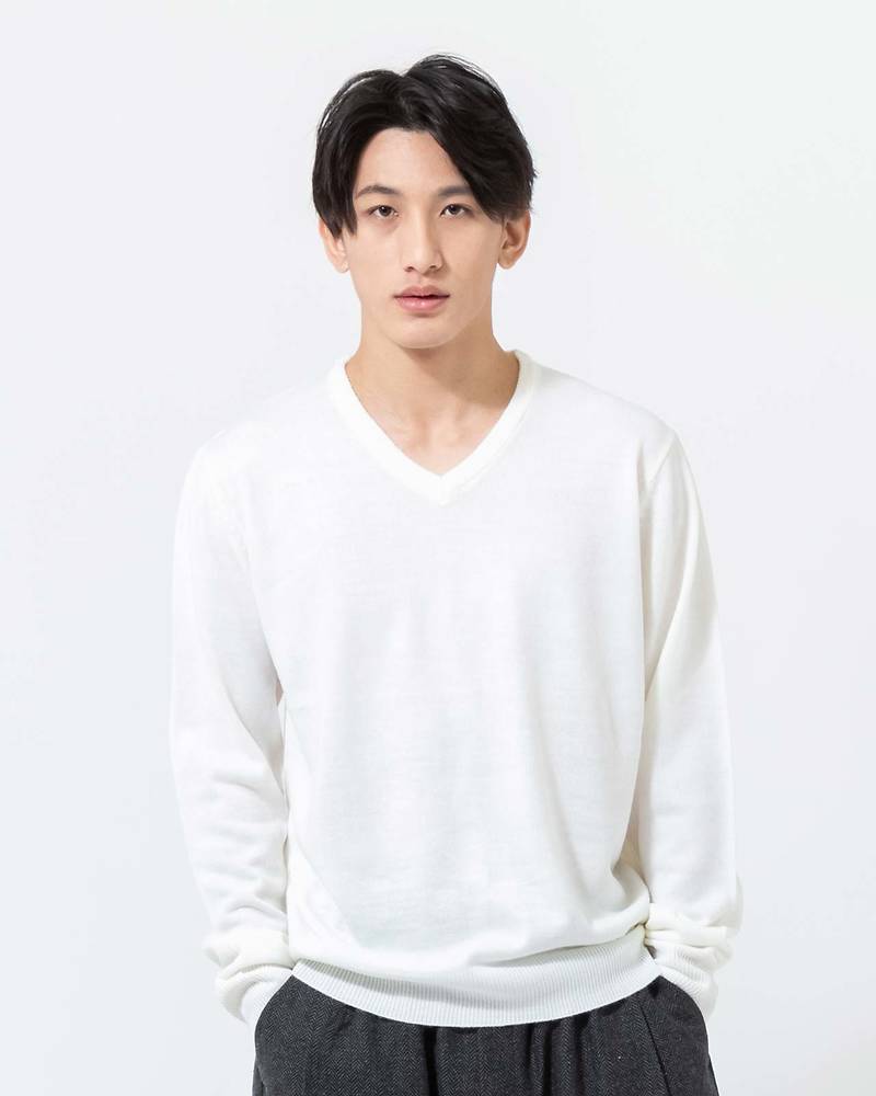 カシミヤタッチVネック長袖ニット(アイボリー)