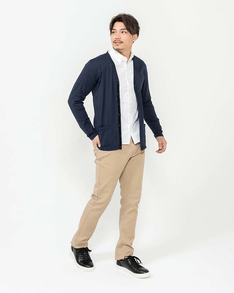 白シャツにカーディガンを羽織ったシンプル大人コーデ