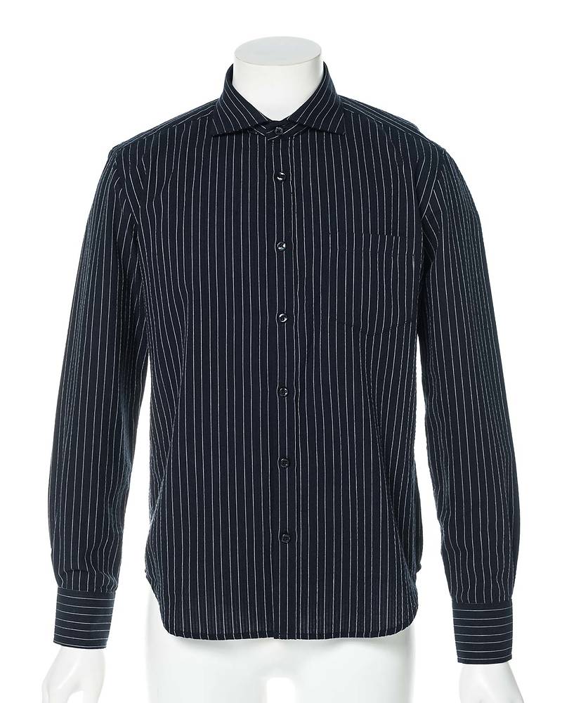 シアサッカーホリゾンタル長袖シャツ(ネイビーストライプ)