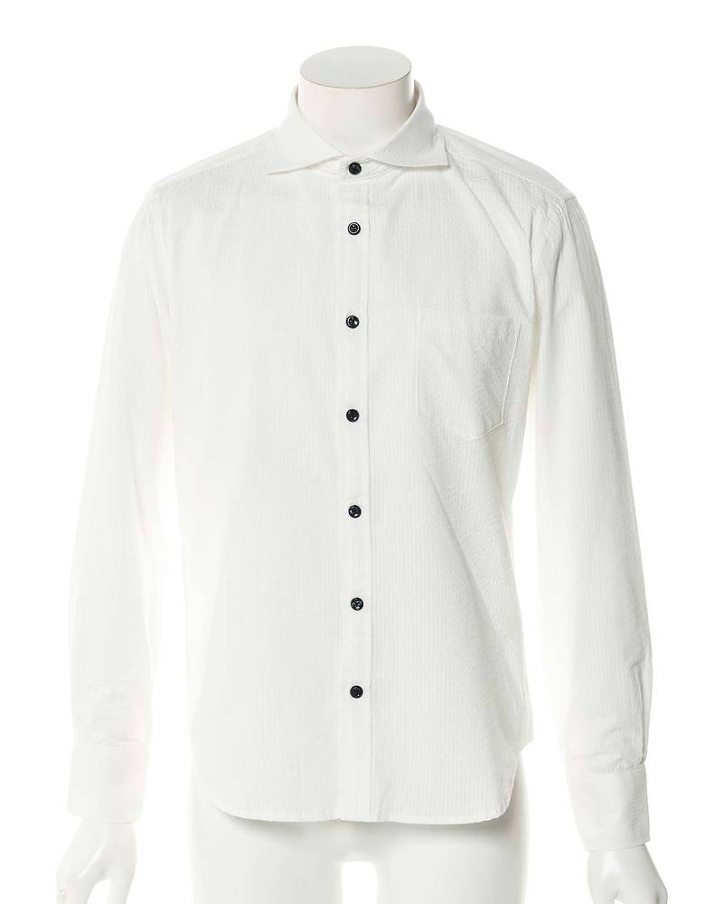 シアサッカーホリゾンタル長袖シャツ(ホワイト)