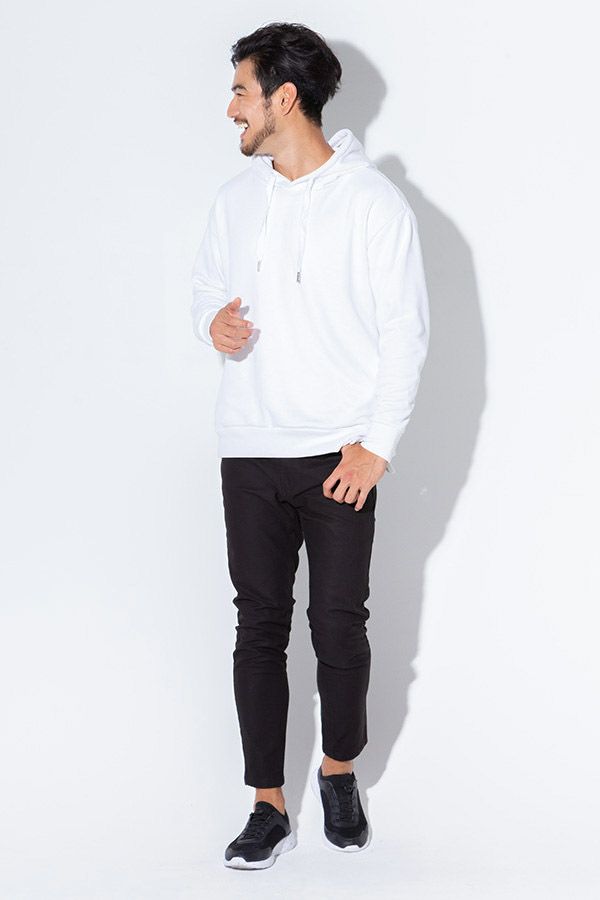 王道スタイルは変わらず人気♪ボリュームのあるプルパーカーとサルエルパンツは抜け感を出すのに好相性◎