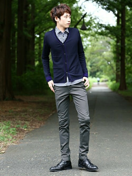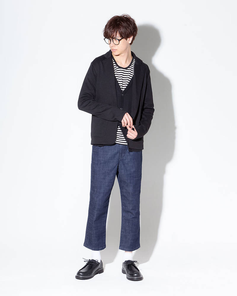 ジャケット×カーディガン×長袖Tシャツ×パンツ