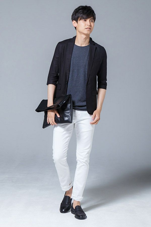 もしスマートカジュアルに慣れてきたら、勇気を出して1枚買ってみたいのは白のスキニーパンツ。