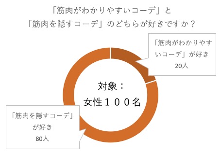 ジャケットやカーディガン等の「筋肉を隠すコーデ」とTシャツなど「筋肉が分かりやすいコーデ」のどちらが良いかを聞いた結果がこちらです。