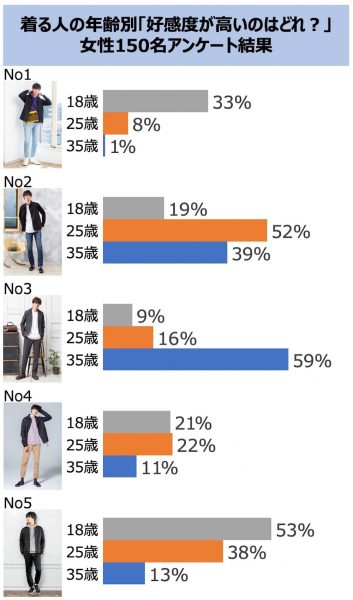 18歳・25歳・35歳は「その年齢の男性が着た場合の女性好感度」を表しています。
