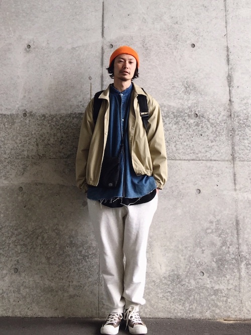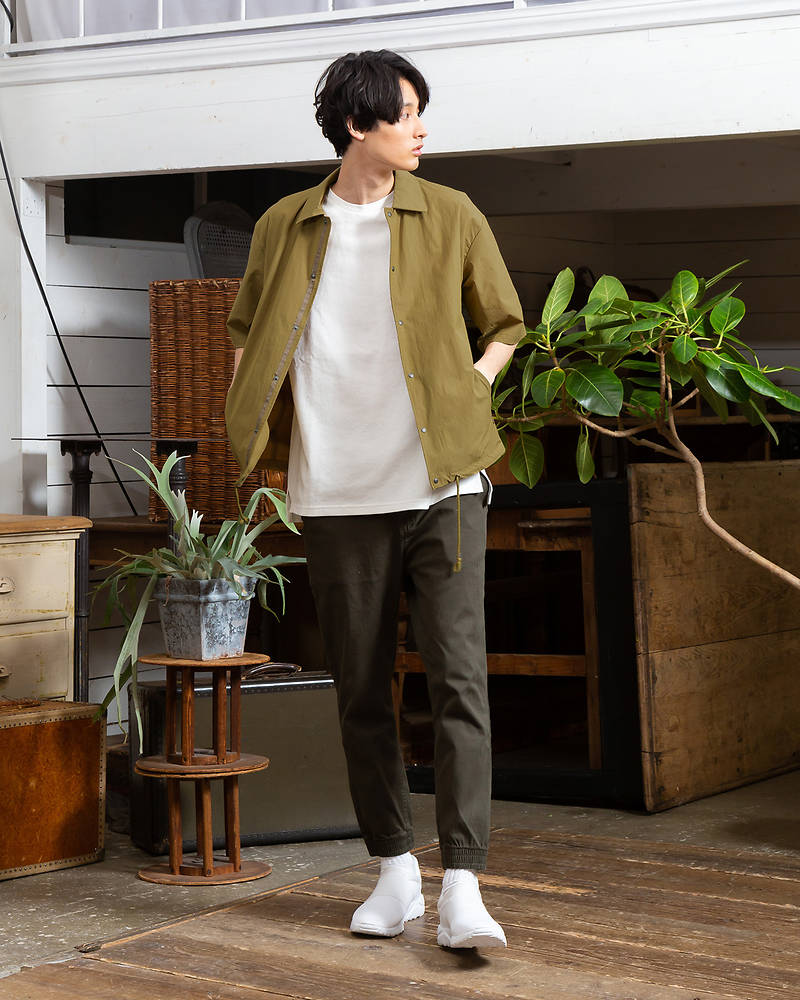 夏用の6部袖のコーチジャケットを使ったコーデ。