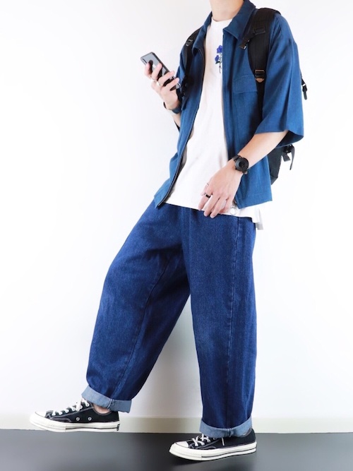デニムの素材感を武器に、カジュアルな雰囲気をコーデに加えてくれます。