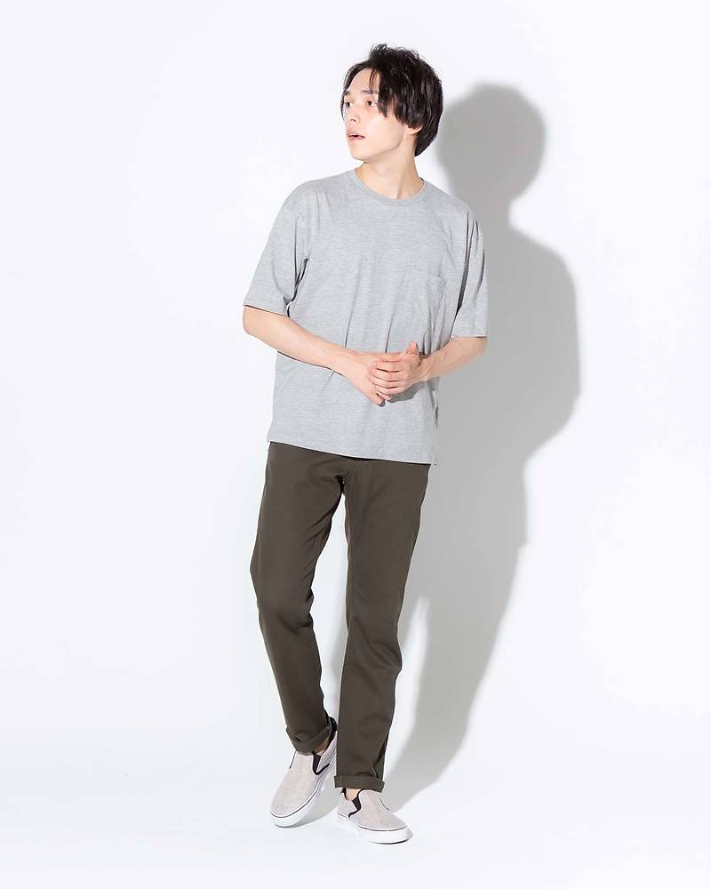 カジュアルな印象になりやすいTシャツですが、ポイントを抑えたチノパンと合わせることで上品な印象に変化します!