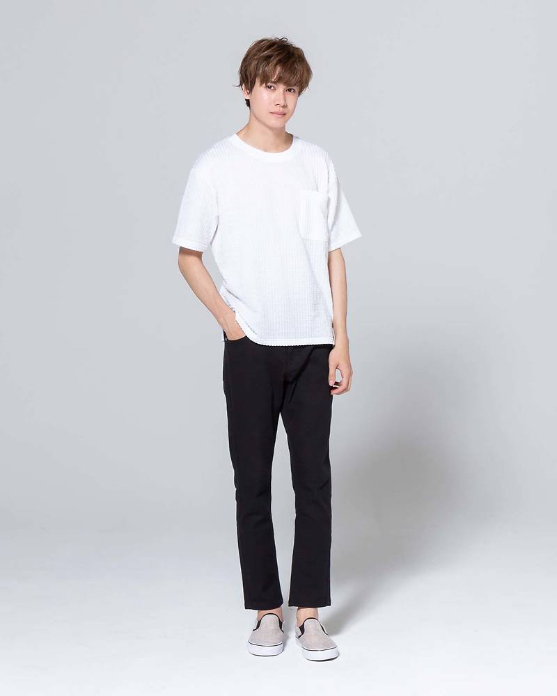 夏は白Tシャツに暗めのパンツを合わせるのが定番ですが、逆に上を暗く・下を明るくする着こなしはこなれたオシャレな印象に!