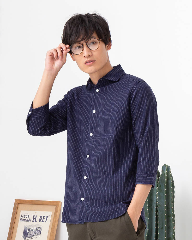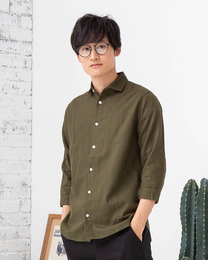 5位フレンチリネンレーヨン七分袖シャツ