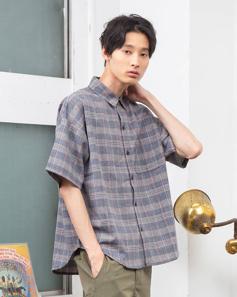 4位チェック柄BIGシルエット半袖シャツ