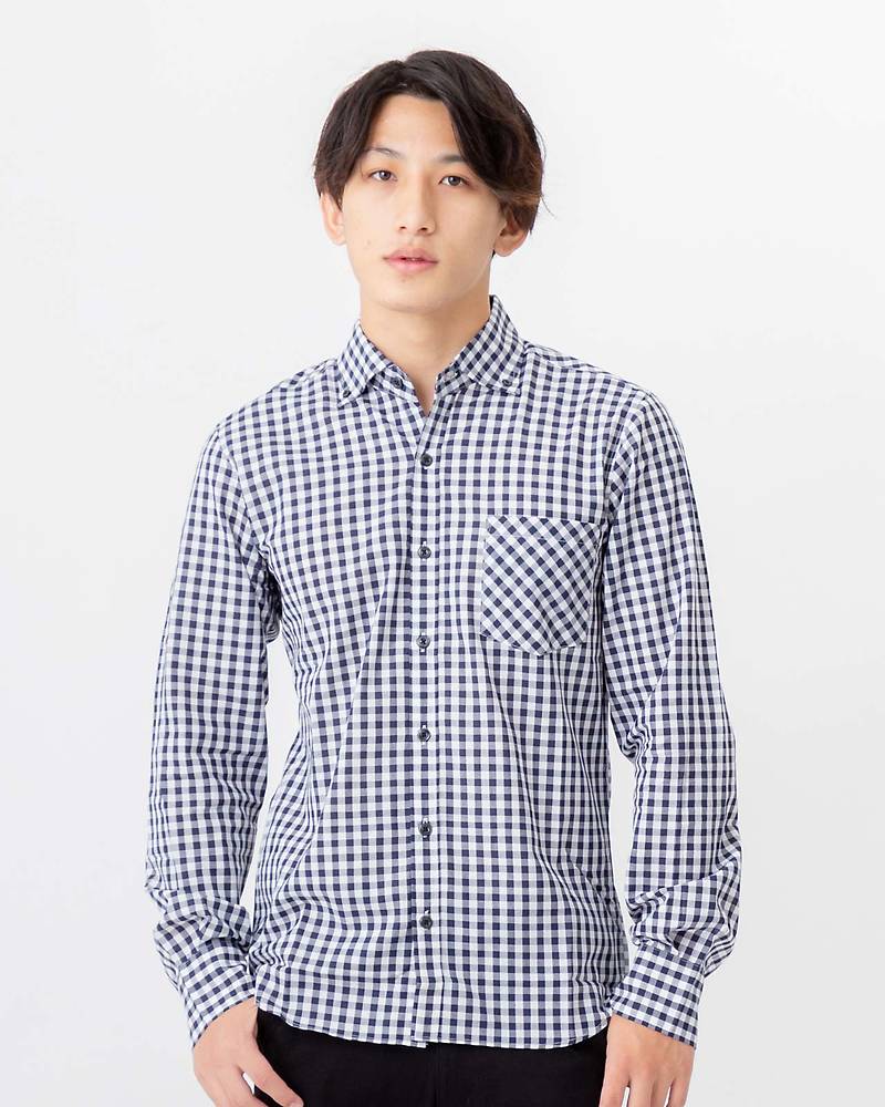 10位日本製ギンガムチェックボタンダウン長袖シャツ