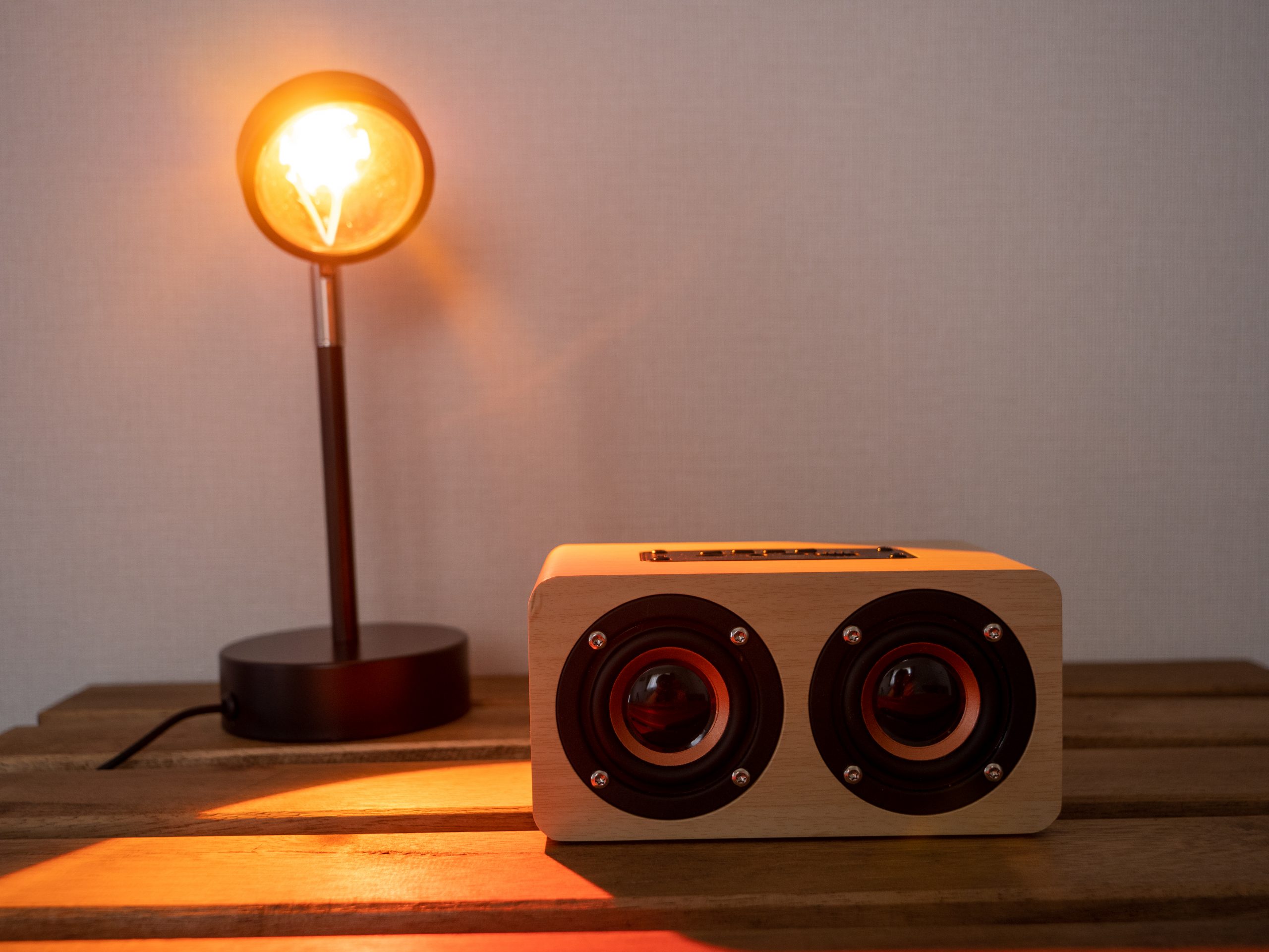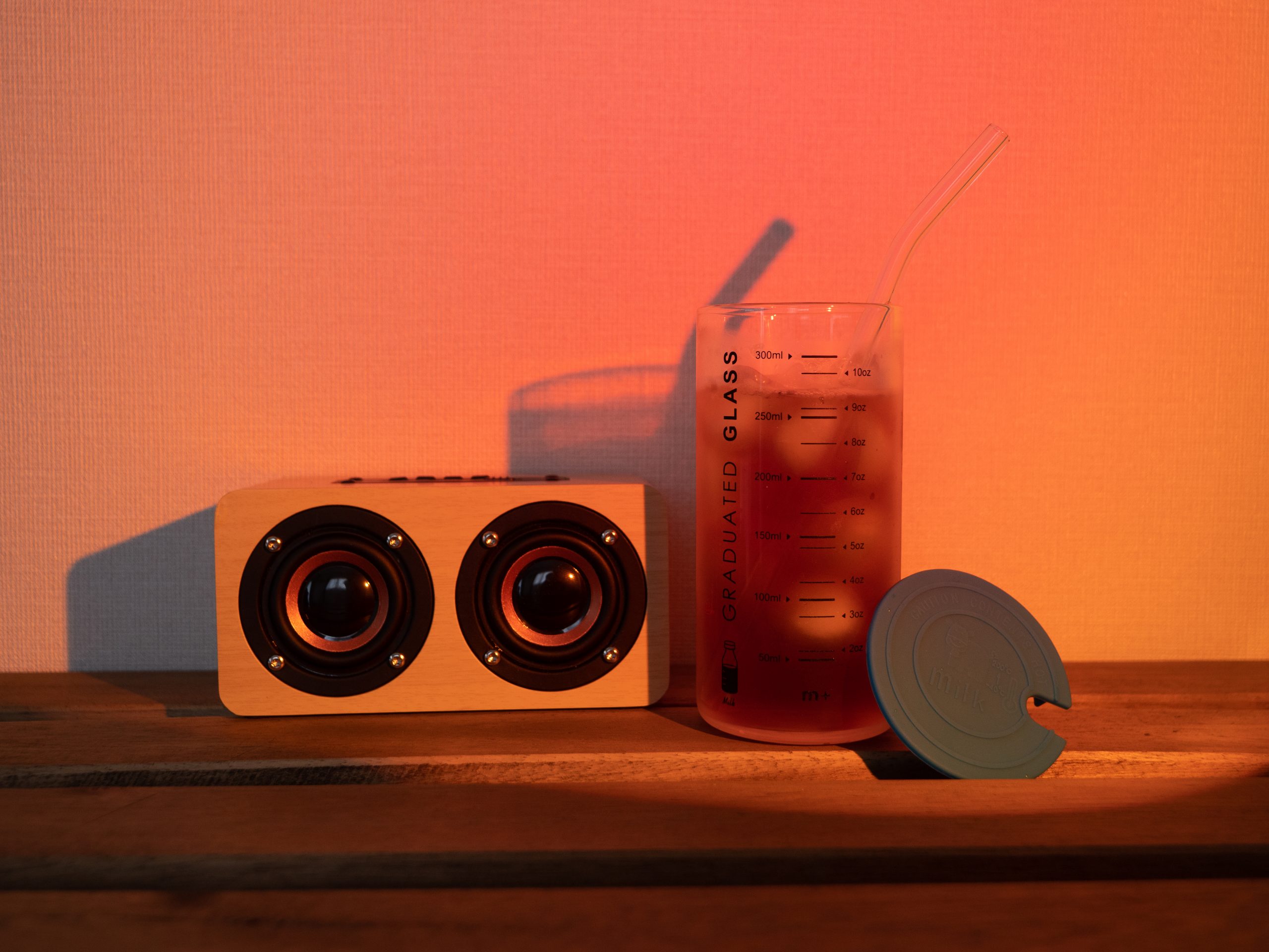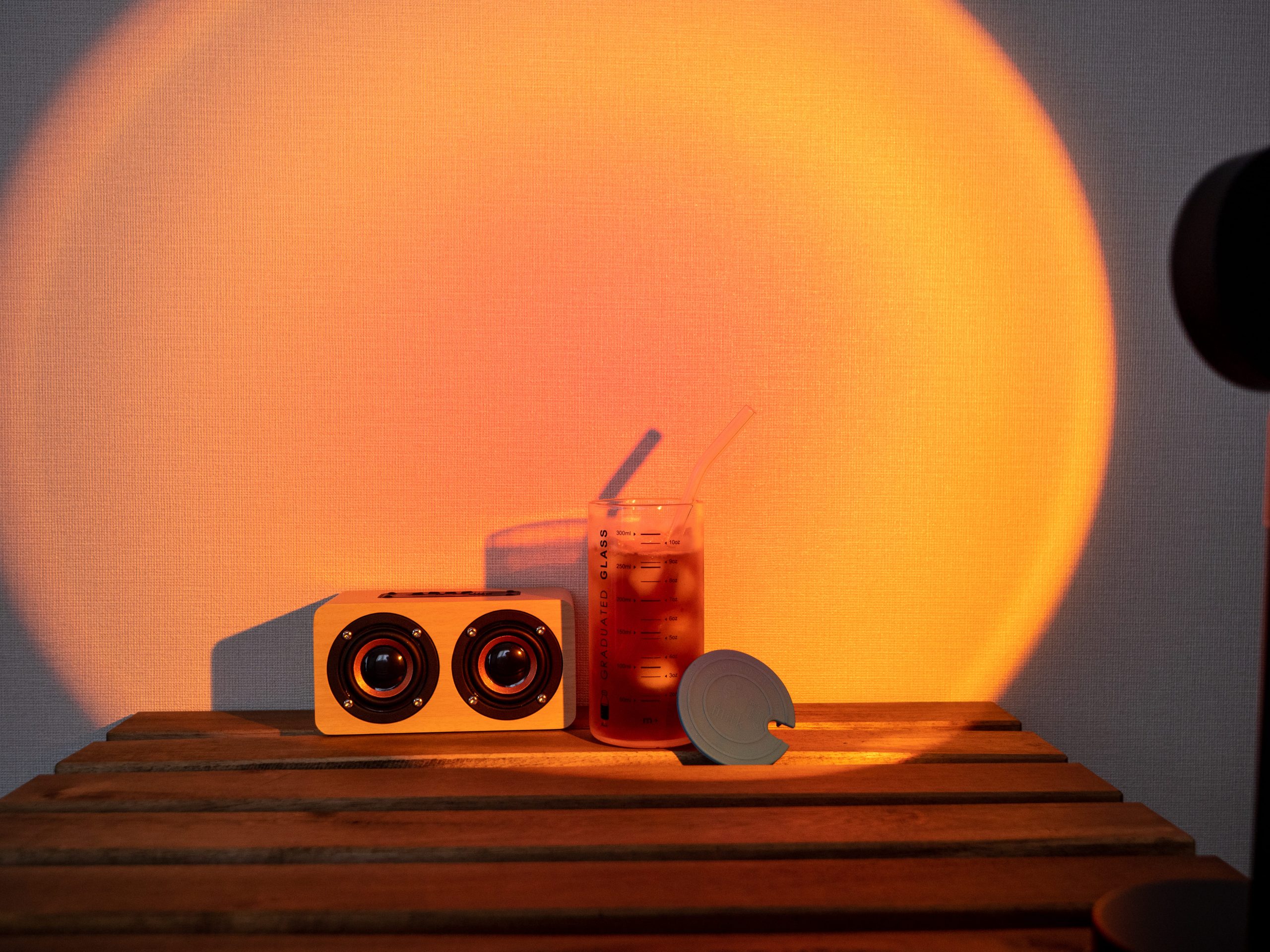 今回購入したアイテムは、「ミニレトロスピーカー」「スケールグラス」「サンセットライト」の3つです!