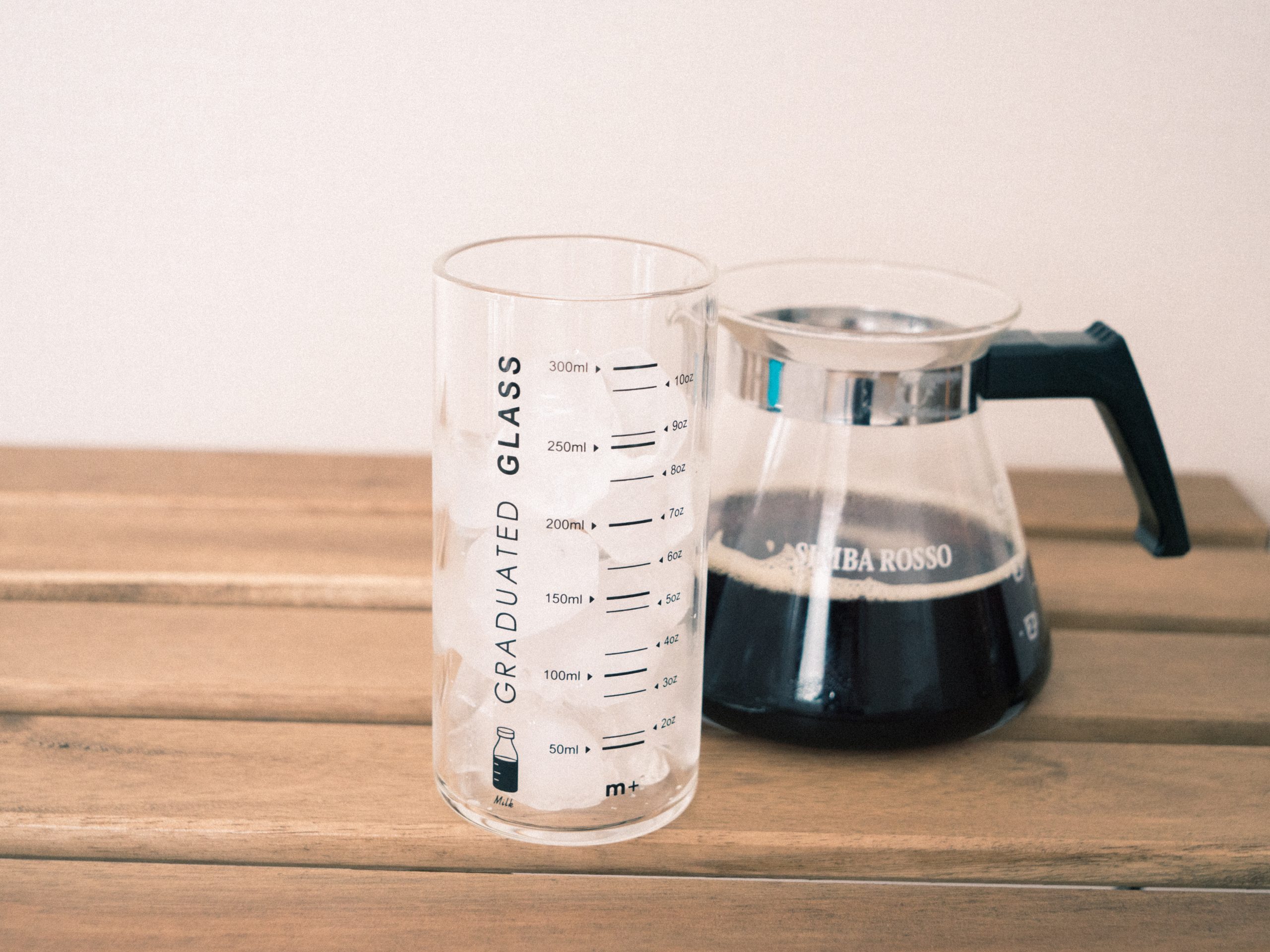 今回はアイスコーヒーを丁寧に淹れて、スケールグラスで飲んでいきます。