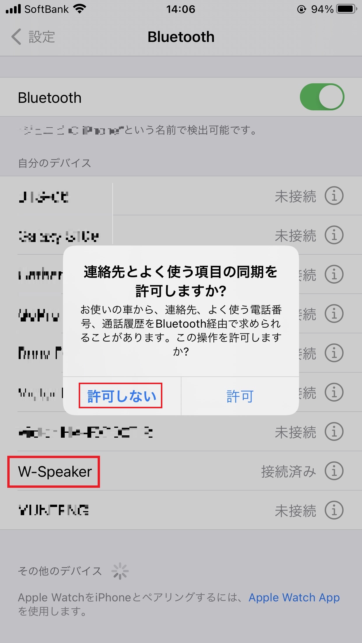 すると、上記のような接続設定が表示されるので「許可しない」をタッチすれば設定完了です。