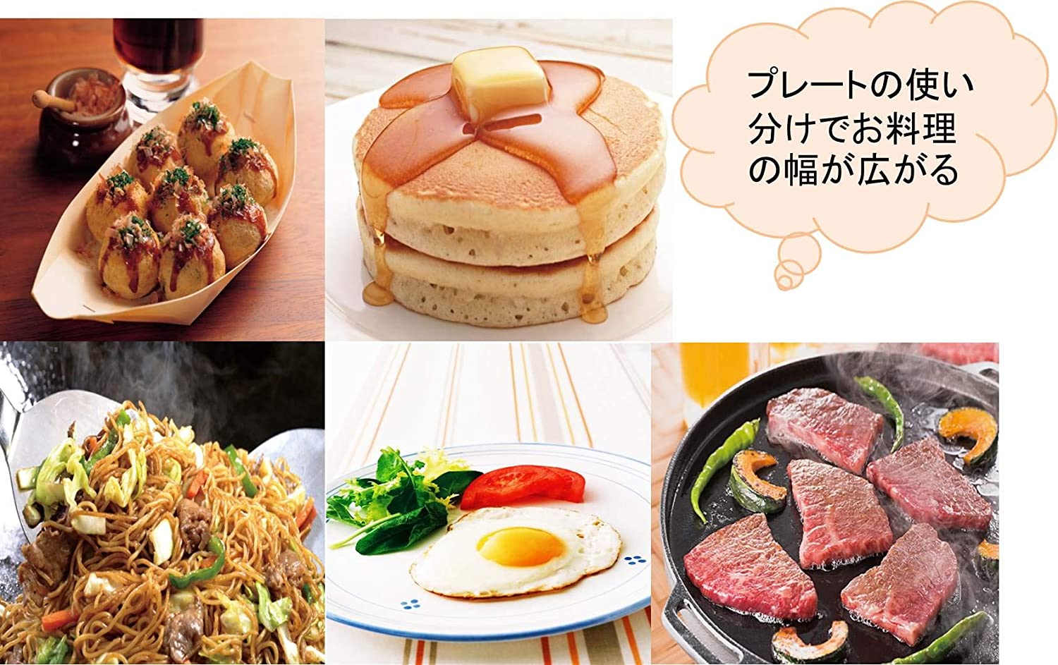 | 付属品 | 平面プレート・たこ焼きプレート・セラミック深鍋・木べら・蓋 |