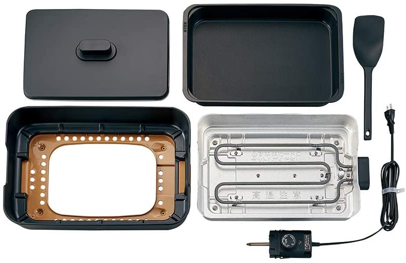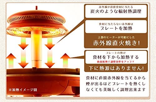上に付いているカーボンヒーターによって直接調理するので、下に熱源がなく煙がでないのが特徴。