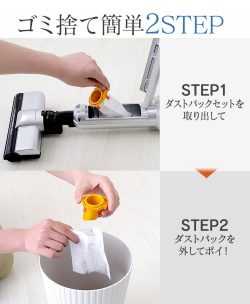 紙パックタイプは、紙パックを本体に装着し、ゴミが溜まったらパックごと捨てる方式。
