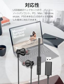 PLAYMM パソコンイヤホン USBヘッドセット PC用 マイク付きイヤホン 有線 カナル型 軽量 音量調節 テレワーク ZOOM用 web会議 オンライン授業 遠隔仕事 ゲーム用 2.5m