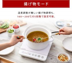 | 付加機能 | 切り忘れ防止機能 異常温度上昇防止機能 鍋検知機能 鍋なしOFF機能 小物検知機能 マグネット式電源コード 揚げ物温度調整機能 湯沸しモード |