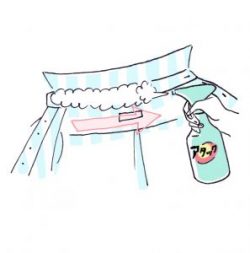 襟周りの汚れや汗ジミには、スプレータイプの洗濯用洗剤を直接スプレーし、すぐに洗濯します。