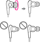 イヤホンイヤーピースを装着する際には、以下のようにしてはめ込んでみましょう。