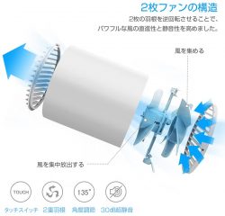 後ろ側のファンで空気を取り込み、前側のファンで空気の束を送風するため、送風効率が高く、強力な風を楽しめます。