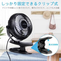 デスクワークをする時、周りに扇風機を置く良い場所が見つからない場合は、クリップがついていると助かります。