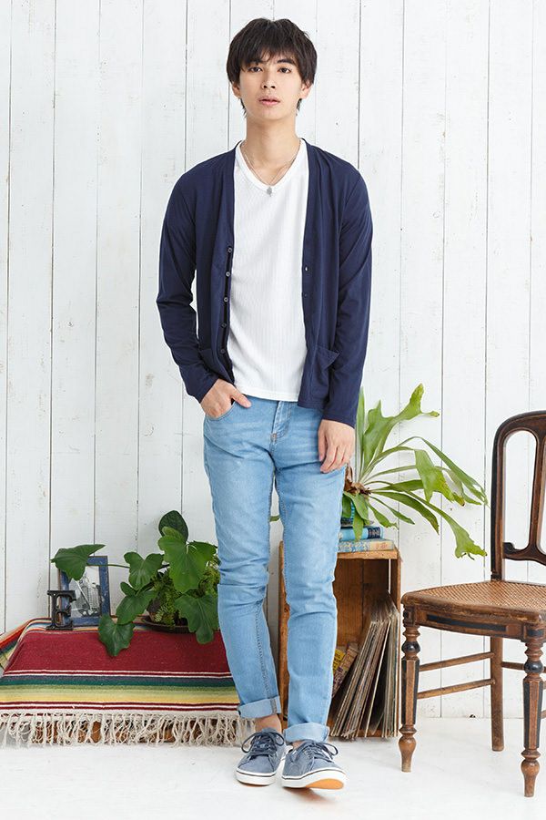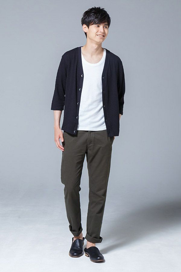 カーディガンへ色を足したいなら、ネイビーを選びましょう。