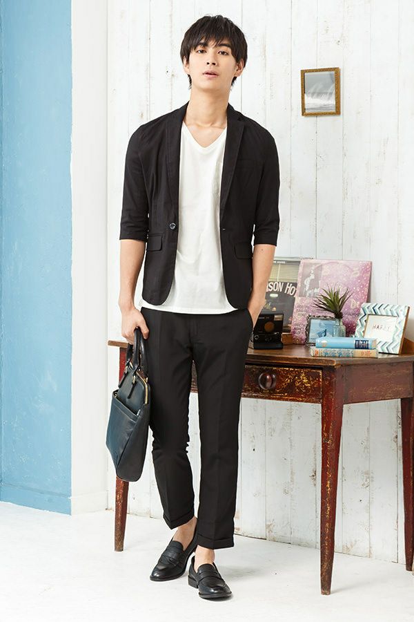 テーラードジャケット×半袖Tシャツ×パンツ(3点セット)