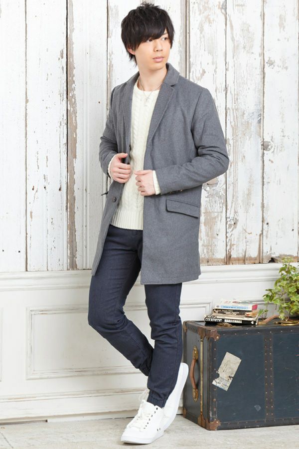 チェスターコート×タートルニット×長袖Tシャツ×チノパンツ(4点セット)