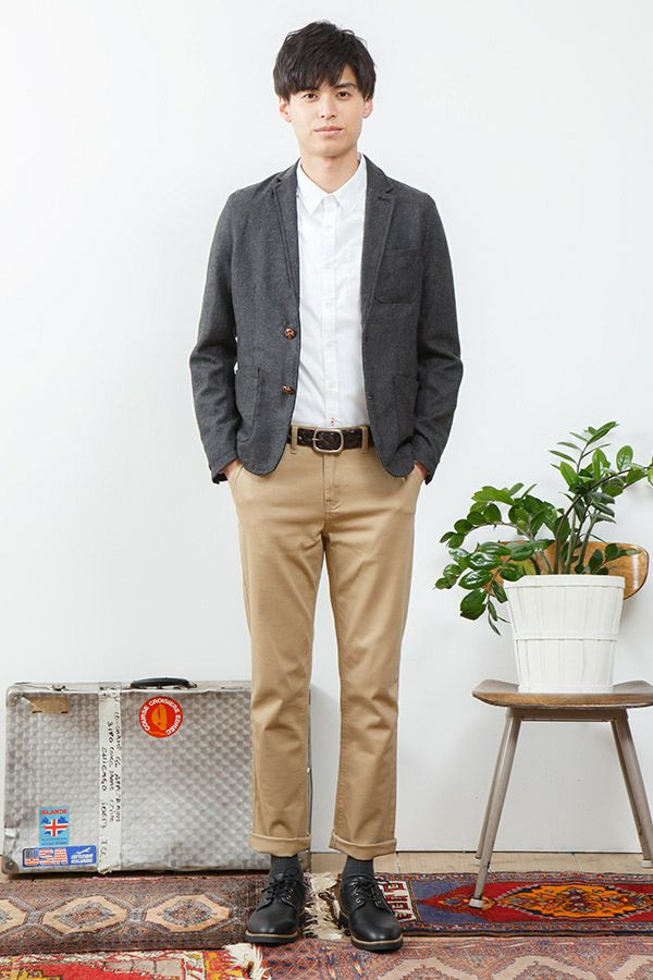 テーラードジャケット×長袖シャツ×半袖Tシャツ×チノパンツ(4点セット)