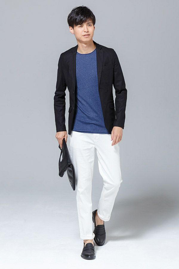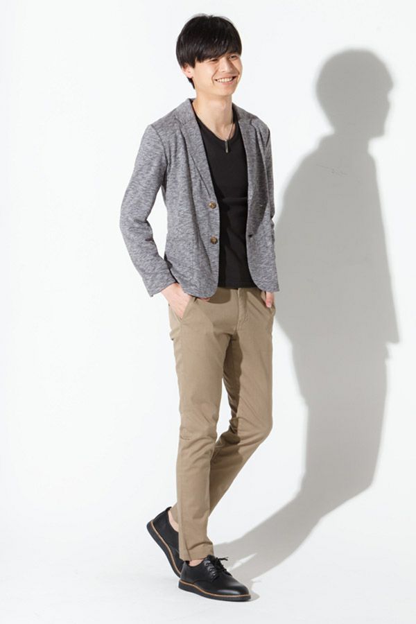 テーラードジャケット×長袖シャツ×半袖Tシャツ×チノパンツ(4点セット)