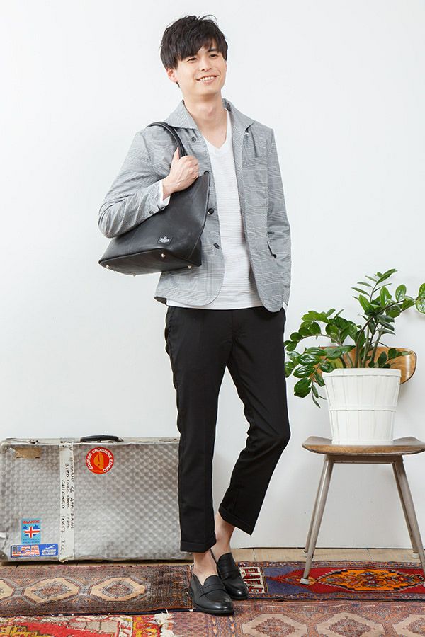 さりげなくパンツの裾をロールアップしているところもポイント!