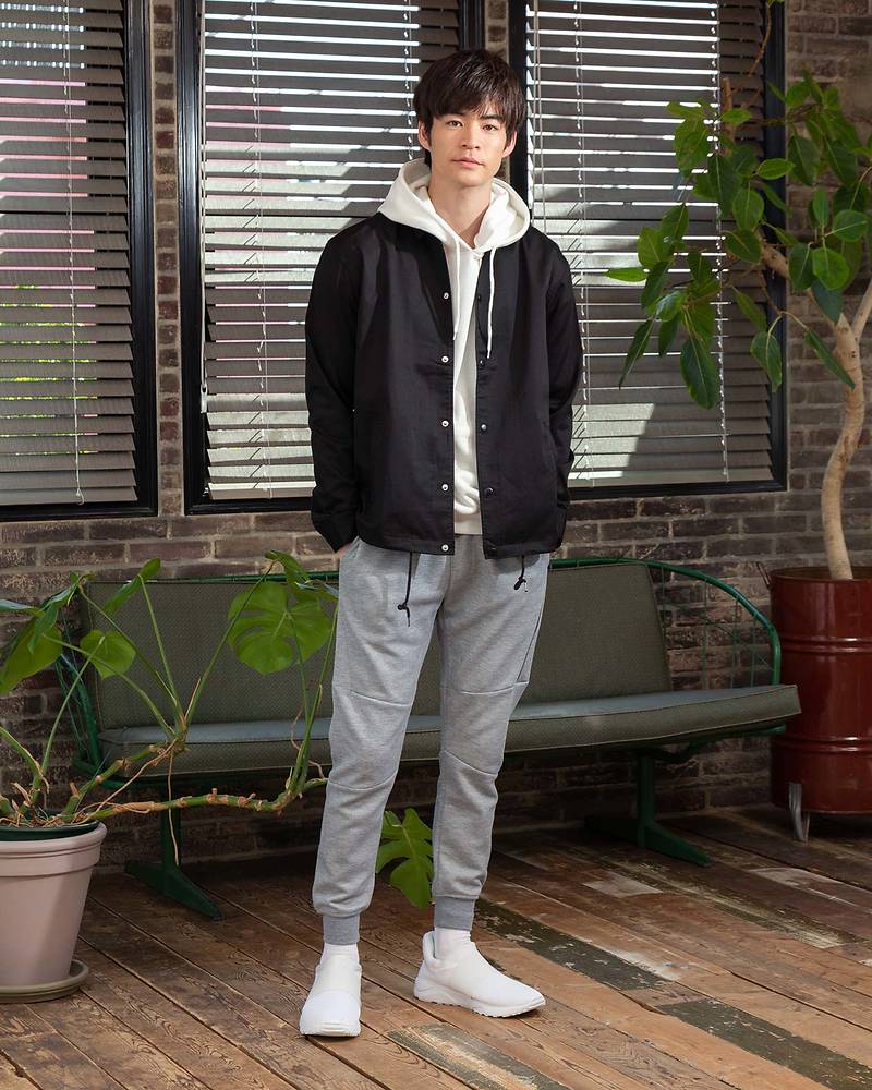 コーチジャケット×プルパーカー×半袖Tシャツ×パンツ