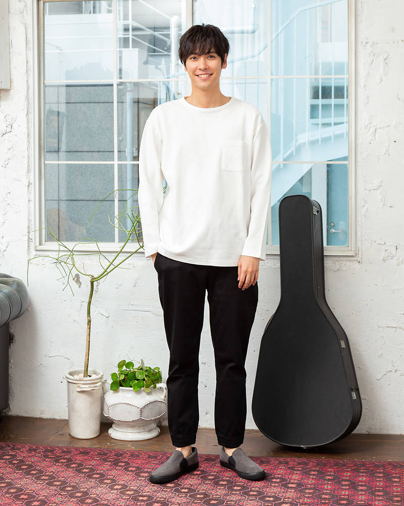 たとえば、こんな白のロングTシャツとブラックのジョガーパンツの組み合わせはいかがでしょう。