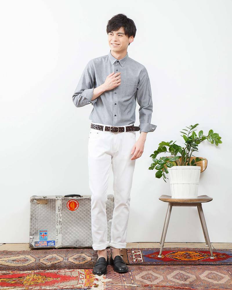 こちらも王道的なビジカジコーデですが、ボトムを白にしてることでコナレ感と爽やかさがUPしてます。