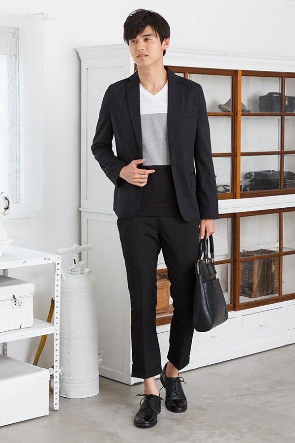 テーラードジャケット×半袖Tシャツ×パンツ(3点セット)