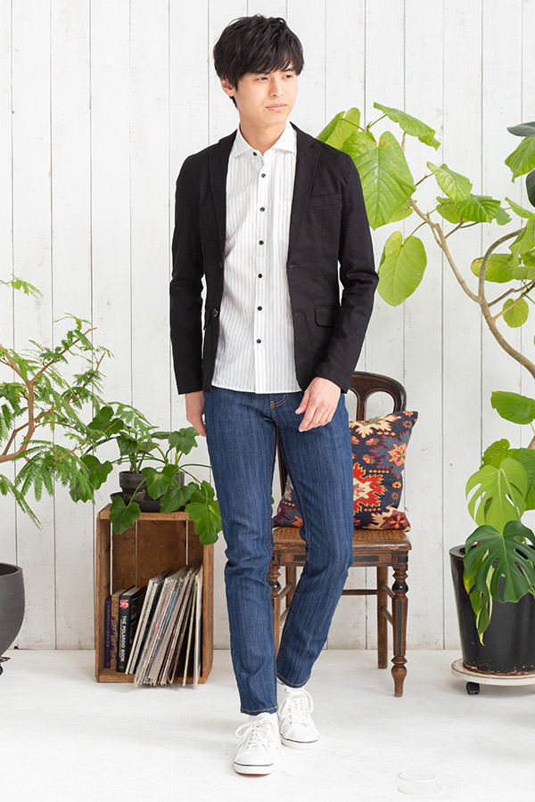 ですが、「黒ジャケット・白T・黒パン」と思考停止して合わせてもそこそこ見れます。