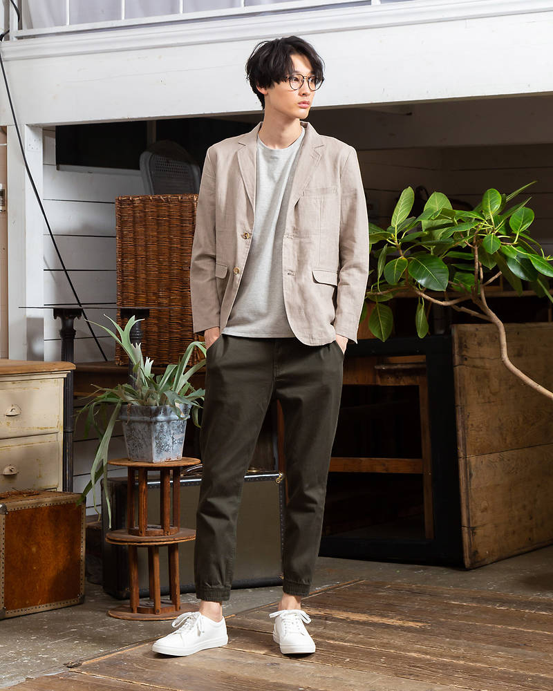 こちらもセットアップになっていますが、パンツはジーンズでもチノパンでも合います。