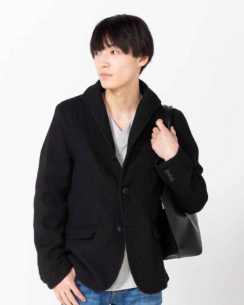 ワッフル生地を使って変化をつけたブラックジャケット!