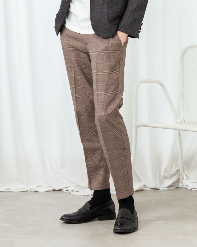 グレンチェックストレッチバックシャーリングトラウザー(ブラウン)